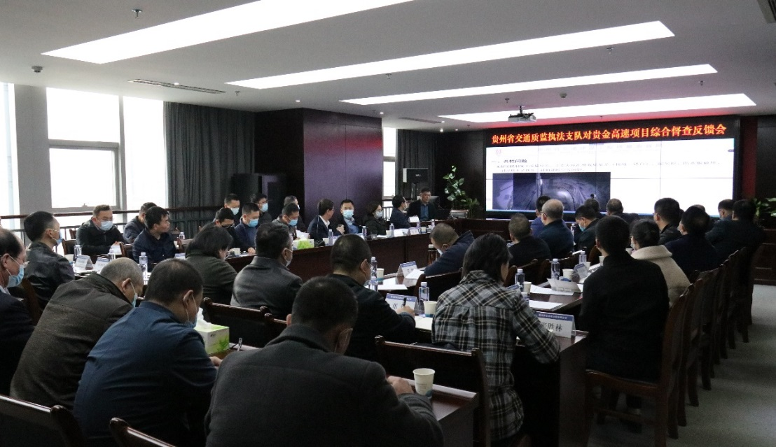 ??4月2日,貴州省交通建設工程質(zhì)量監(jiān)督執(zhí)法支隊支隊長主持召開了貴金高速項目綜合督查反饋會。我公司除在現(xiàn)場參加反饋會外,同時在母體會議室設立了分會場,公司技術負責人、質(zhì)量負責人及各專業(yè)板塊的負責人、技術人員均參加了反饋會。