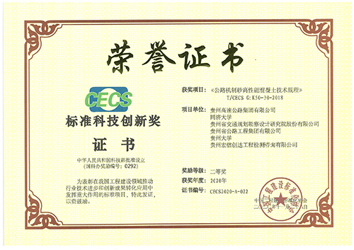 ??近日,中國工程建設標準化協(xié)會公布了關于“標準科技創(chuàng)新獎”評審的結果。我公司參編標準中國工程建設標準化協(xié)會《公路機制砂高性能混凝土技術規(guī)程》(T/CECS G:K50-30-2018)榮獲“標準科技創(chuàng)新獎”二等獎。