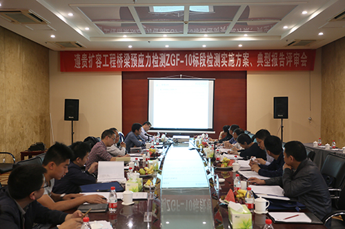 ??2017年5月12日,貴州高速公路集團(tuán)有限公司遵貴擴(kuò)容工程總監(jiān)辦與貴州宏信創(chuàng)達(dá)工程檢測(cè)咨詢有限公司在貴陽市嘉華酒店主持召開了遵貴擴(kuò)容工程(青山至羊昌段及羊昌互通)單梁靜載試驗(yàn)及橋梁預(yù)應(yīng)力檢測(cè)ZGF-10標(biāo)段預(yù)應(yīng)力檢測(cè)實(shí)施方案、典型報(bào)告評(píng)審會(huì)。與會(huì)專家聽取了我司關(guān)于預(yù)應(yīng)力檢測(cè)實(shí)施方案、典型報(bào)告的匯報(bào),審閱了相關(guān)資料。經(jīng)專家組的評(píng)審和論證,一致認(rèn)為遵貴擴(kuò)容工程四座連續(xù)剛構(gòu)橋預(yù)應(yīng)力檢測(cè)采用的實(shí)施方案內(nèi)容全面、方法可行,可有效保證預(yù)應(yīng)力施工的質(zhì)量,統(tǒng)一予以通過評(píng)審。鑒于在高墩大跨徑連續(xù)剛構(gòu)橋開展預(yù)應(yīng)力及灌漿密實(shí)度檢測(cè)尚屬首例,專家組建議我司多積累經(jīng)驗(yàn)數(shù)據(jù),為后續(xù)類似結(jié)構(gòu)的設(shè)計(jì)、施工、檢測(cè)提供基礎(chǔ)性參考資料。