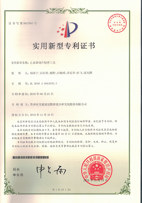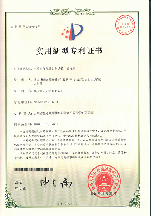 日前,我公司工程試驗(yàn)中心工程應(yīng)用技術(shù)創(chuàng)新團(tuán)隊(duì)又有三項(xiàng)實(shí)用新型專利獲得國(guó)家知識(shí)產(chǎn)權(quán)局授權(quán),分別為《一種模具》專利號(hào)ZL201620538333.4、《止水帶切片取樣工具》專利號(hào)ZL201620611035.3以及《一種瀝青薄膜加熱試驗(yàn)用盛樣皿》專利號(hào)ZL 201620446442.3。