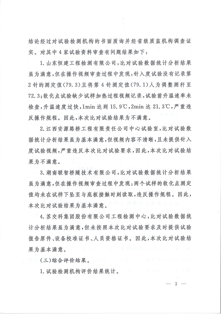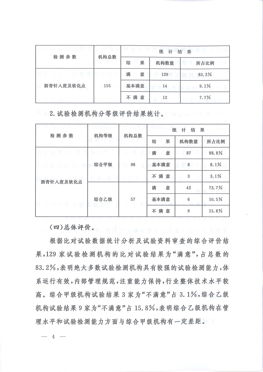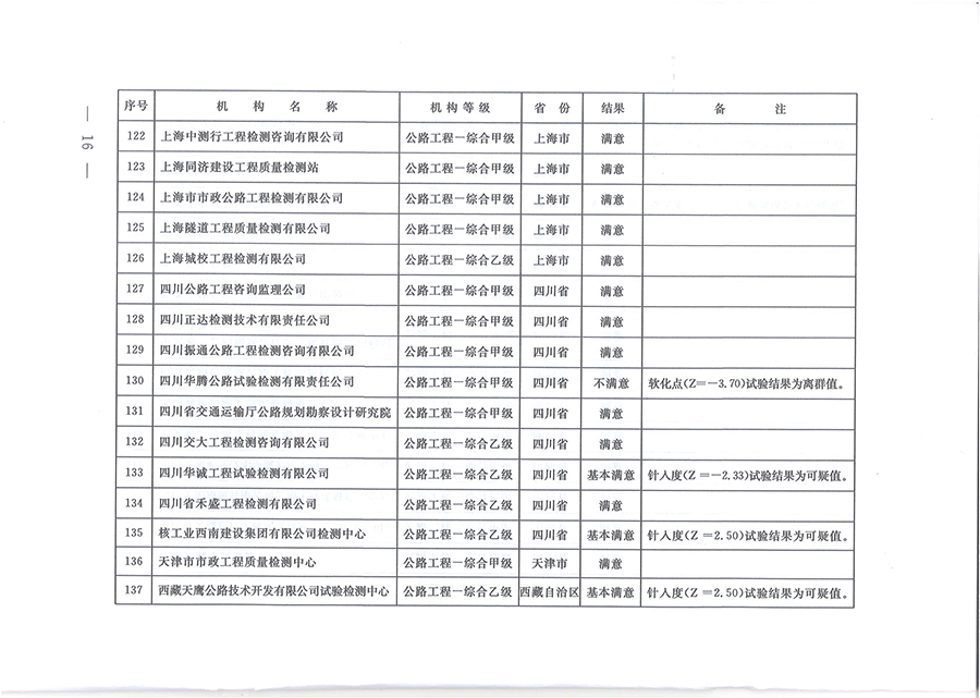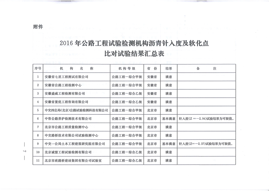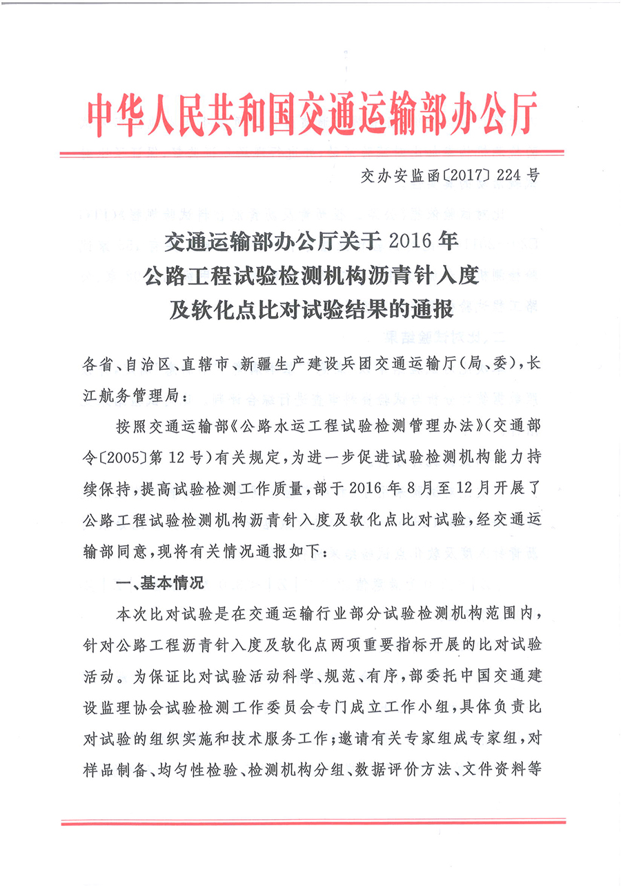 2016年公路工程試驗(yàn)檢測(cè)機(jī)構(gòu)瀝青針入度及軟化點(diǎn)比對(duì)試驗(yàn)結(jié)果通報(bào)