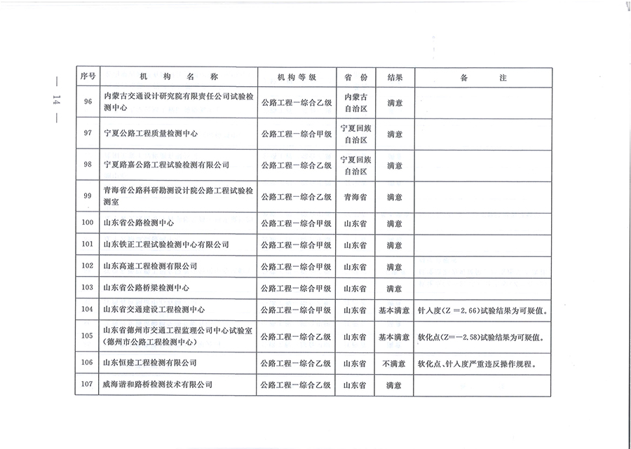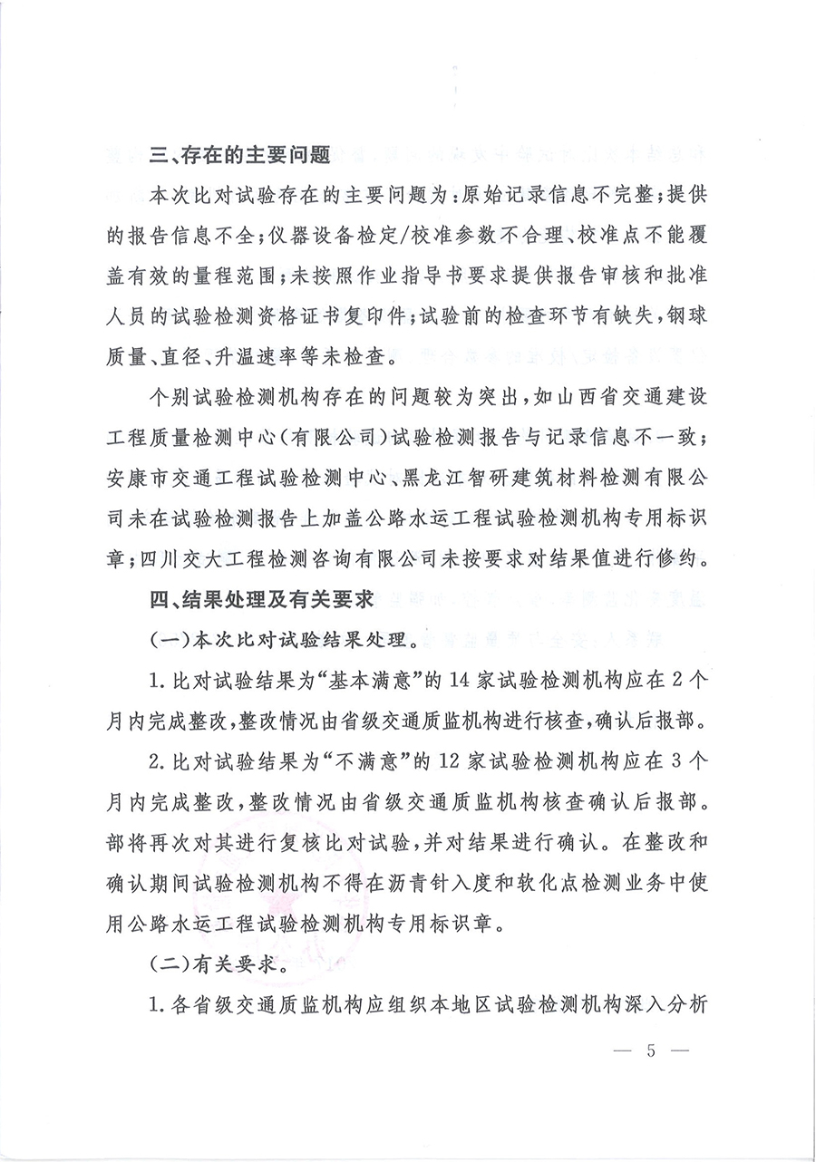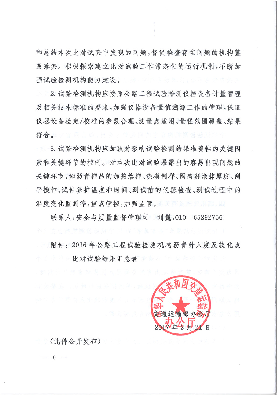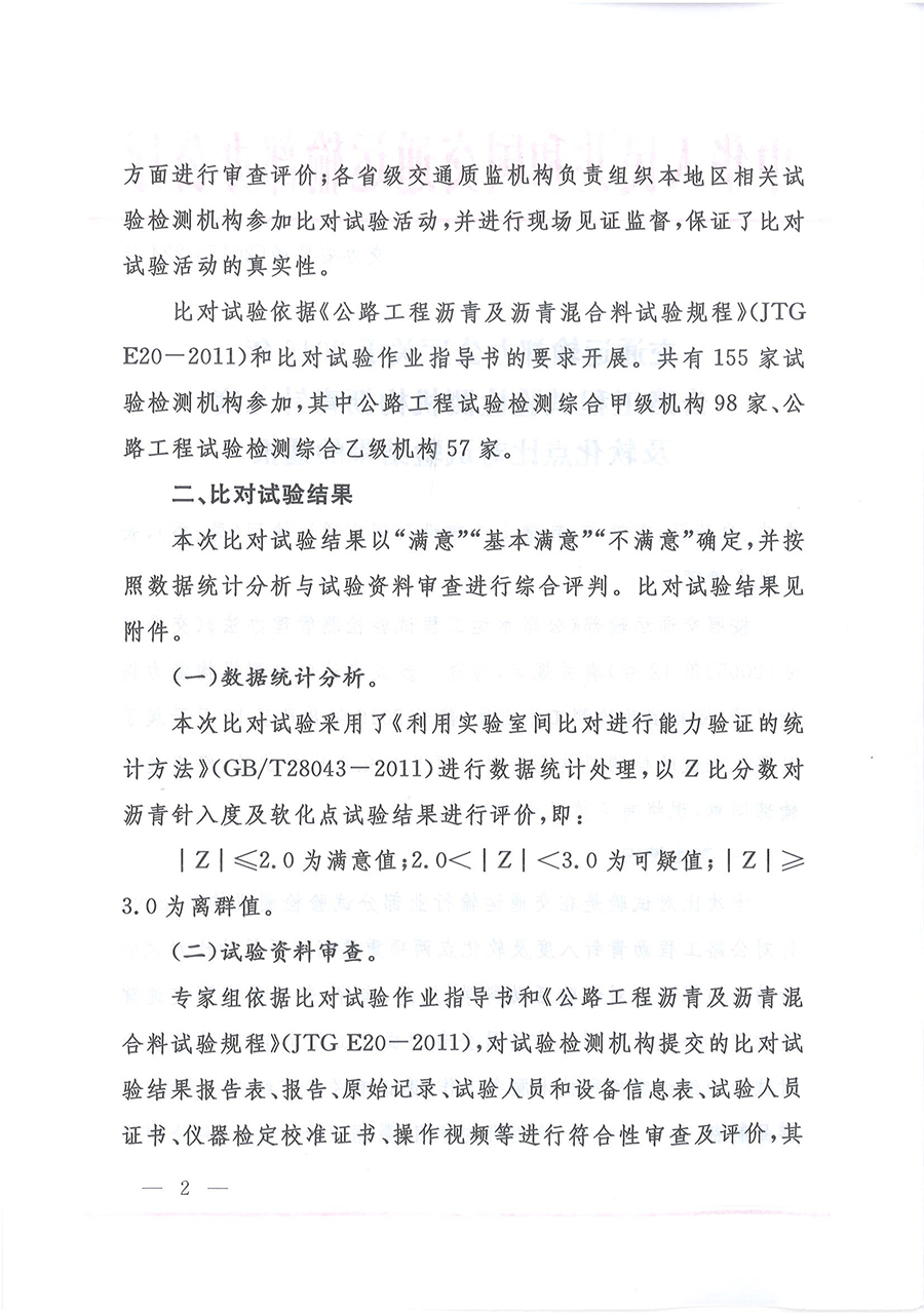 2016年公路工程試驗(yàn)檢測(cè)機(jī)構(gòu)瀝青針入度及軟化點(diǎn)比對(duì)試驗(yàn)結(jié)果通報(bào)