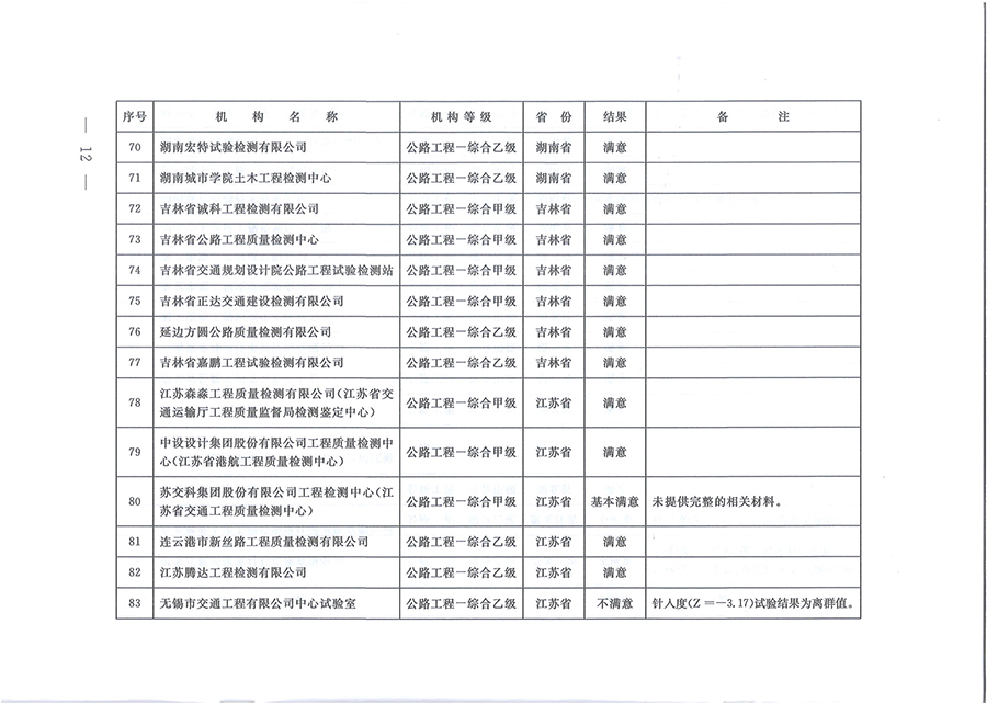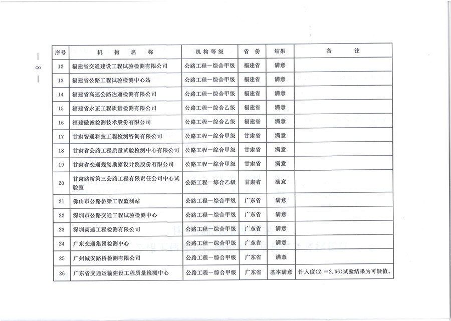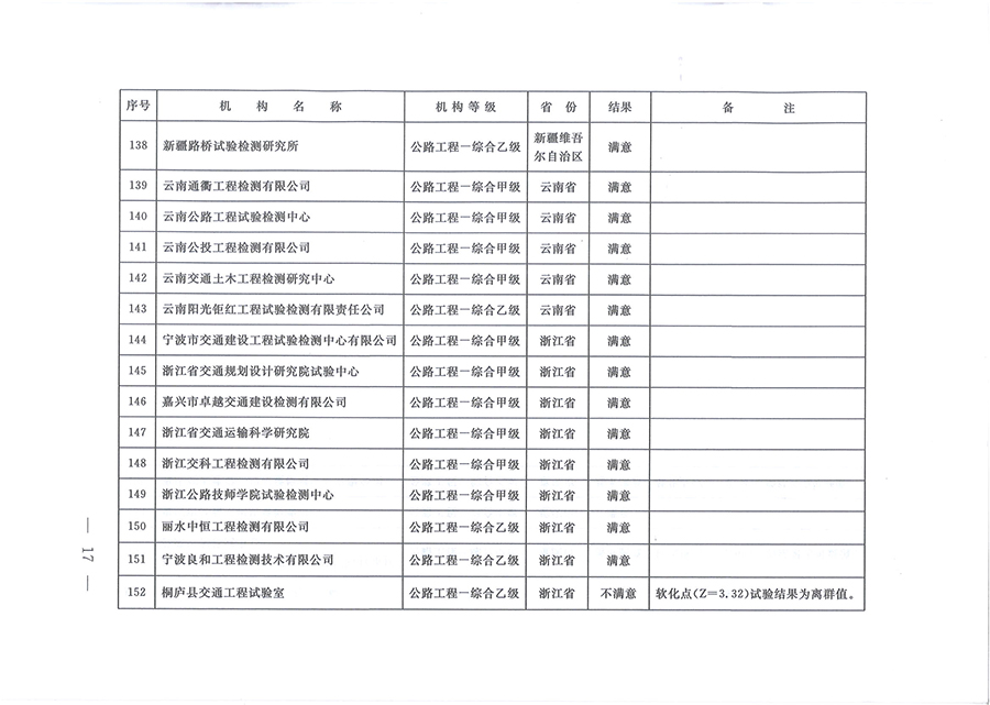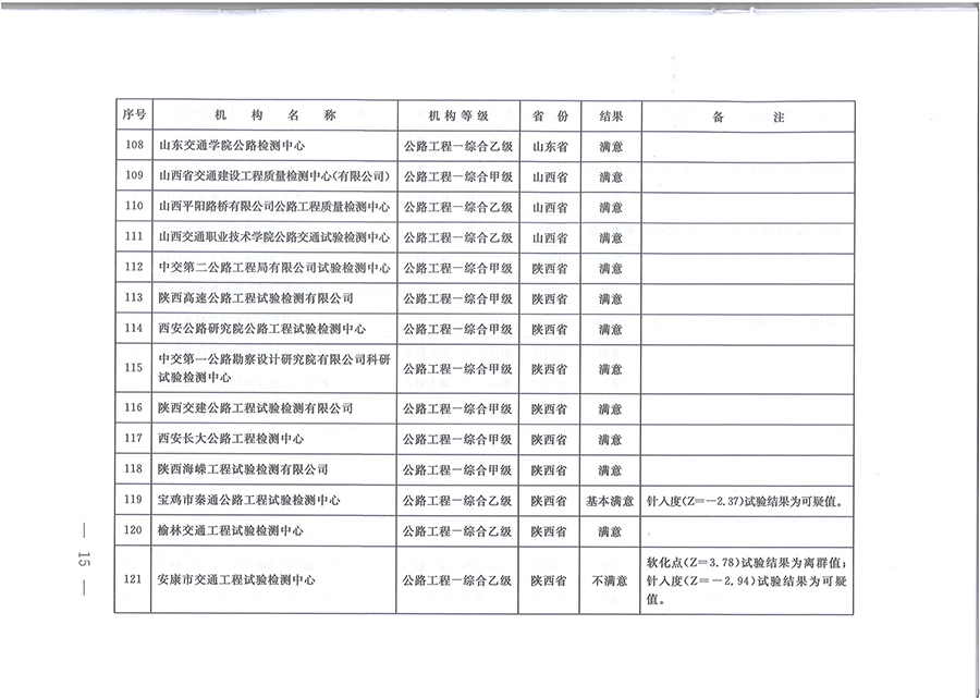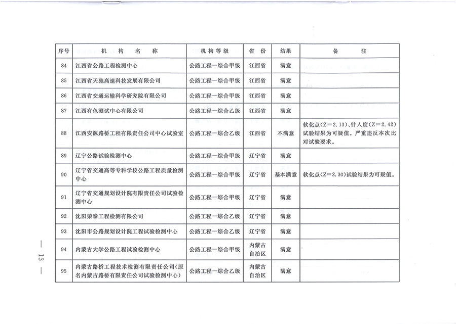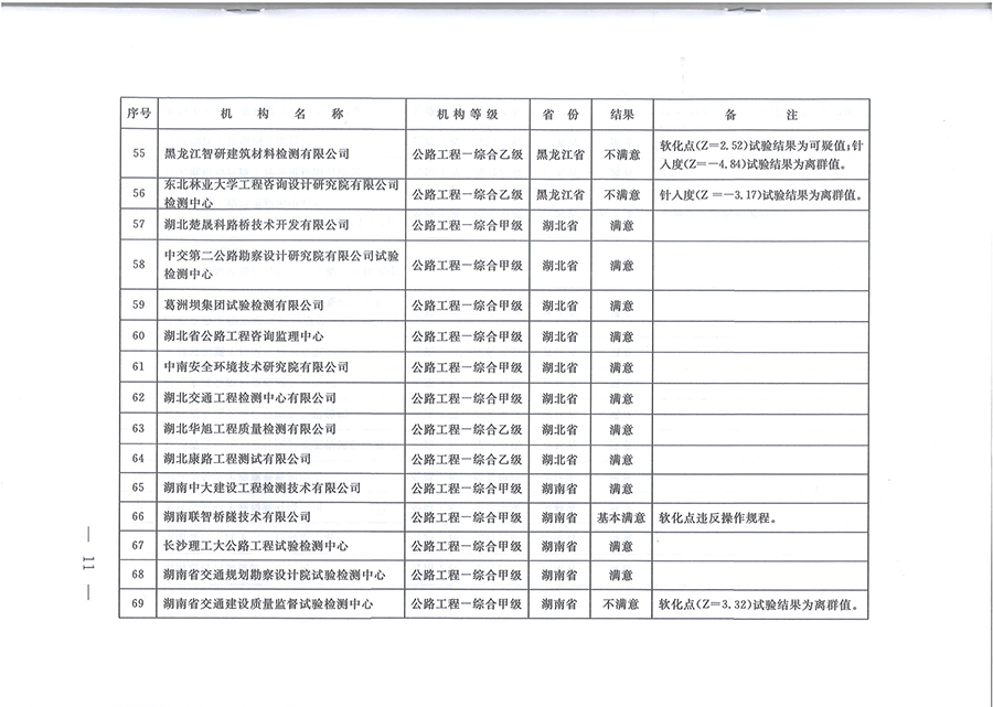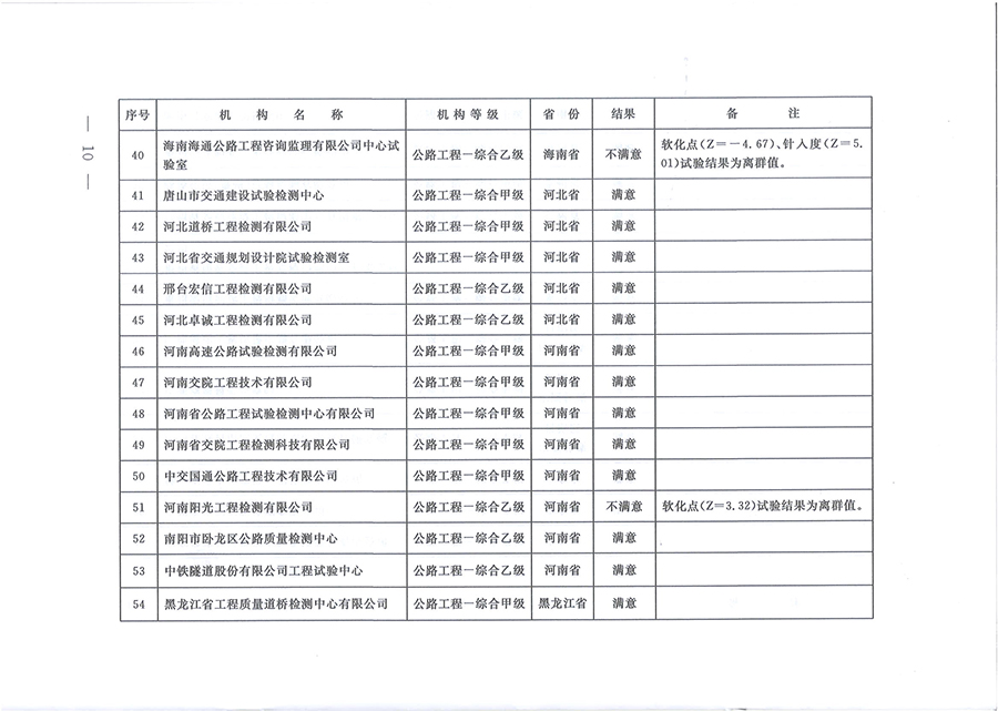 2016年公路工程試驗(yàn)檢測(cè)機(jī)構(gòu)瀝青針入度及軟化點(diǎn)比對(duì)試驗(yàn)結(jié)果通報(bào)