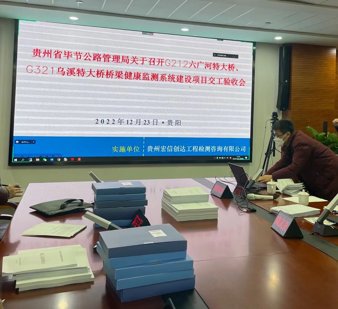 ??2022年12月23日,貴州省畢節(jié)公路管理局組織召開了G212六廣河特大橋、G321烏溪特大橋健康監(jiān)測系統(tǒng)建設(shè)項目交工驗收會,會議采取線上、線下相結(jié)合的方式進行。建設(shè)單位貴州省公路局、貴州省黔西公路管理段、貴州省大方公路管理段、設(shè)計單位蘇交科集團股份有限公司、監(jiān)理單位貴州順康檢測股份有限公司、本項目實施單位貴州宏信創(chuàng)達工程檢測咨詢有限公司相關(guān)領(lǐng)導和技術(shù)人員出席了本次會議。
