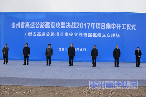 ??1月4日上午,全省高速公路建設(shè)攻堅決戰(zhàn)2017年項目集中開工儀式在都勻至安順高速公路項目貴安支線曹擺樞紐立交舉行。省委副書記、省長孫志剛出席儀式并宣布貴州省高速公路建設(shè)攻堅決戰(zhàn)2017年項目集中開工,開工儀式由省委常委、副省長慕德貴主持。